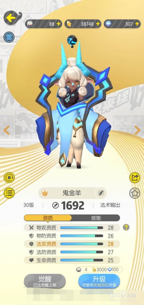 鬼金羊是法攻资质,技能的使用也是法术攻击力,需要注意三防和法攻。