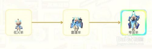 它的初体是“花火羊”。鬼金羊需要2次觉醒,初次觉醒是从“花火羊”进化为“雷蓬羊”,升级到30级才能再次觉醒为最终形态“鬼金羊”。下图就是它的觉醒路径。