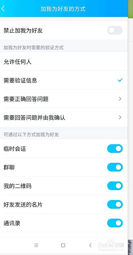 如果要求加自己需要验证信息,那么需要对方填写答案并由自己确认