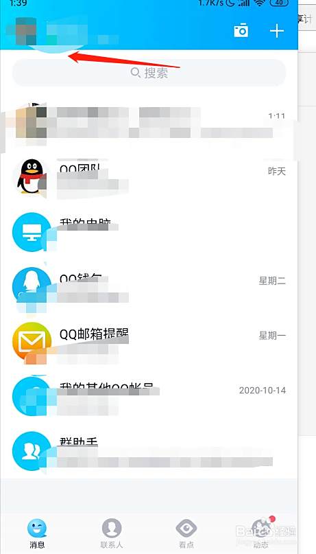 首先我们打开qq,然后点击左上角的qq头像
