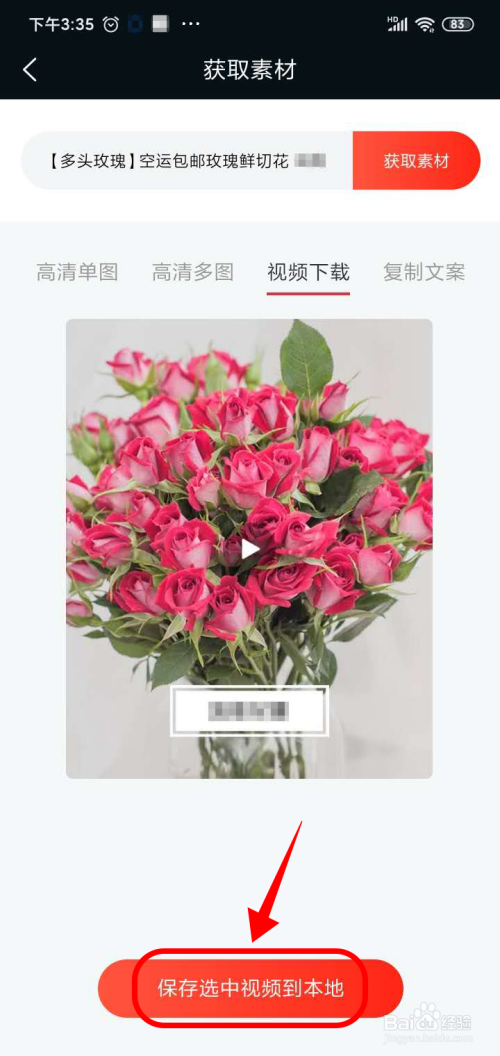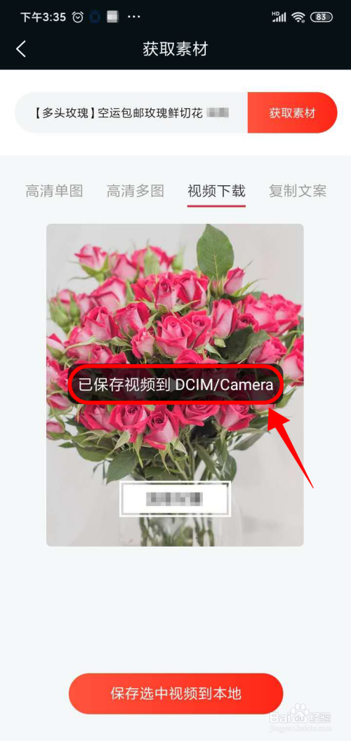 步骤四:获取到视频后,进入到视频下载页面,点击视频下方的“保存选中视频到本地”按钮,即可保存视频。如下图:
