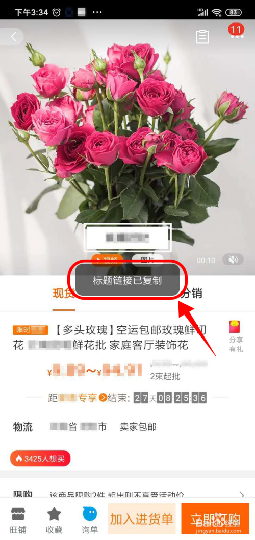 步骤一:在手机主界面打开阿里巴巴App,找到需要保存的视频,进入到该视频所在的产品主页,长按视频下方的标题,复制标题链接。如下图:
