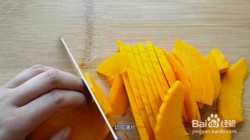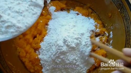 将250克南瓜洗净去皮,切成薄片,上锅蒸熟,加入15克白糖,按压成南瓜泥。