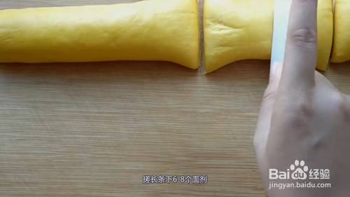 放在案板上再次揉光滑,搓长条下6-8个面剂,面剂向里按压揉搓。搓至面剂变硬,底面光滑,搓成馒头形。