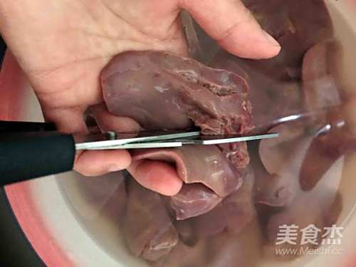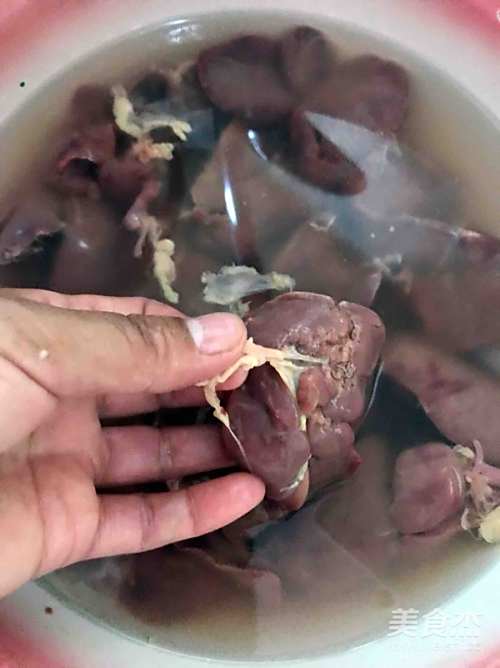 2仔细清洗,把鸡肝上的这些白筋剪掉