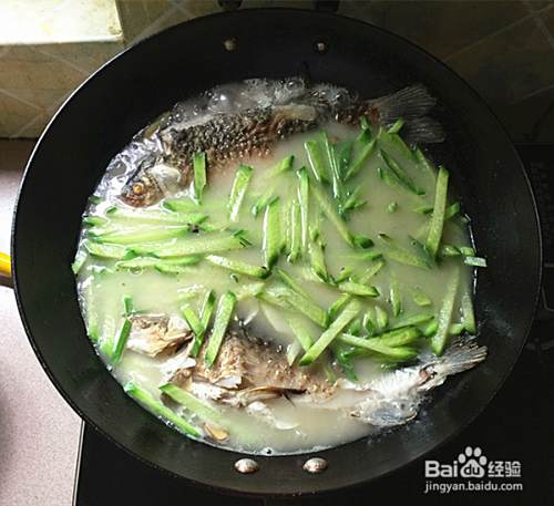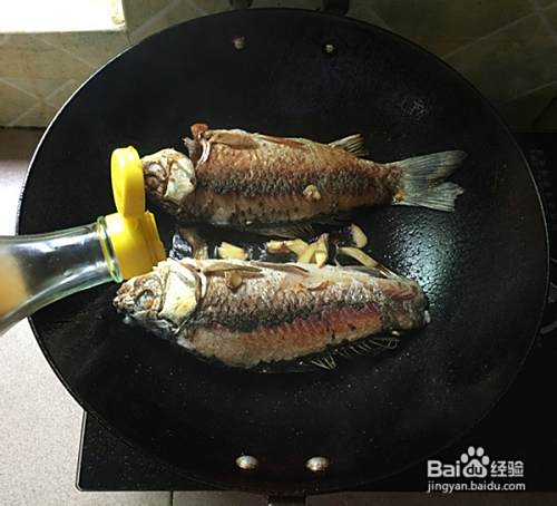 炒锅中注入食用油,烧至7成热时,下腌好的鲫鱼。