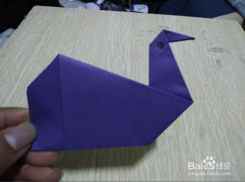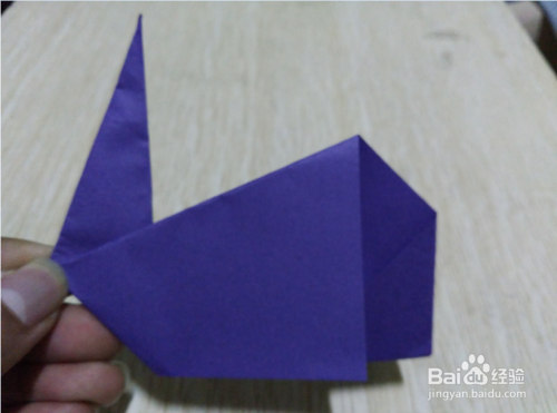 接着讲步骤5突出的角向左方向折叠露出鸭子的小嘴巴,不要折太多否则折出的效果就不像了
