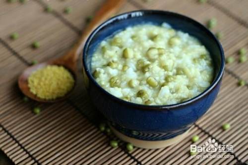 材料:绿豆50克,白米100克,冰糖适量。把绿豆、白米洗净,煮粥,待熟后再加入冰糖,拌匀搅拌,即可食用。这也是一道平日可吃的健康粥。功能是清热解暑,祛暑除烦,生津止渴之功效。