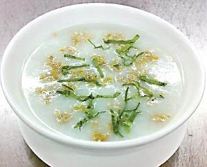 材料:麦冬30克,甘草10克,竹叶15克,白米100克,去核红枣6枚。将麦冬、甘草、竹叶先用水煎熬,取汁,加入粳米、红枣一起煮成粥。这粥带点淡淡的清甜,功能是清热解暑、益气和健胃等功效,假如感到暑热口渴、气短乏力、不思饮食,不妨一试。