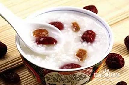 材料:红枣,白米,份量可随自己口味决定。做法很简单,在白粥煮至七成熟的时候,放入红枣同煮。这粥具有养脾、润心肺、补五脏、治虚损的功用,对于血压低、肺虚咳嗽,有一定增益。