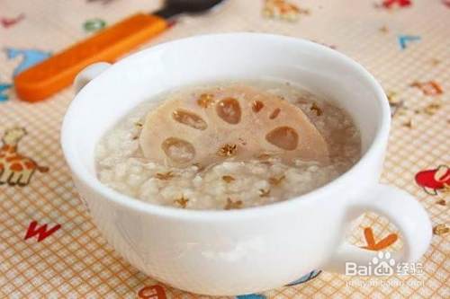 材料:鲜藕200克,白米100克,白糖少许。先将莲藕洗净切片,与白米同煮为粥,待粥熟时,再调入些许白糖,即可进食。这粥益气养阴,健脾开胃,老年人体虚,热天里食欲不振、大便溏薄、热病口渴等等都能进食。