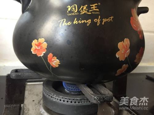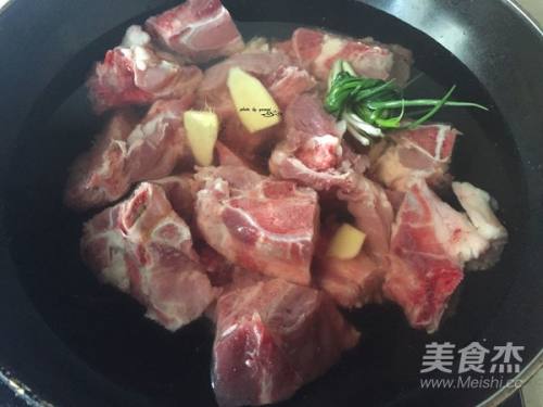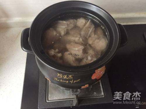 5将焯水后的骨头加入砂锅中,加入姜,足够水,加入少许红酒醋