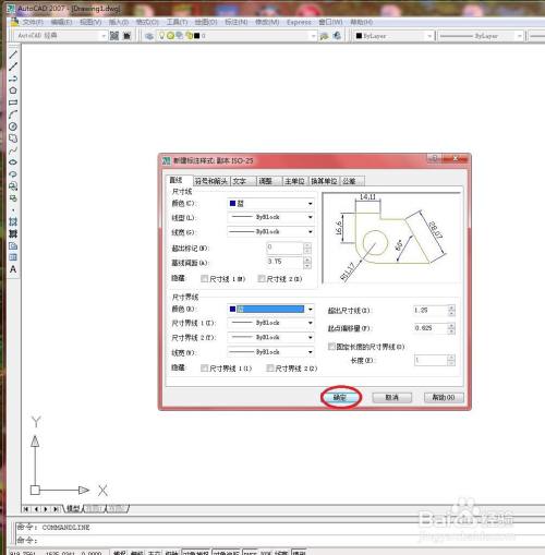单击【继续】按钮,弹出【新建标注样式:副本ISO-25】对话框,选择【线】选项卡,如下图所示