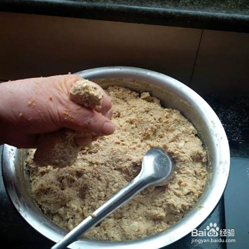 当肉馅拌好放置半小时以上后,将豆腐碾碎放入肉馅中,再放入面粉、淀粉、鸡蛋、蒜末、姜末,拌均匀待用。