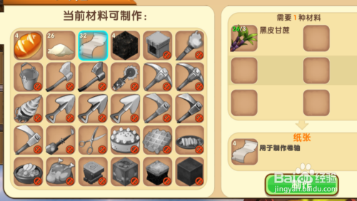 在工作台这里将找到的黑皮甘蔗合成纸,黑皮甘蔗也可以合成糖。