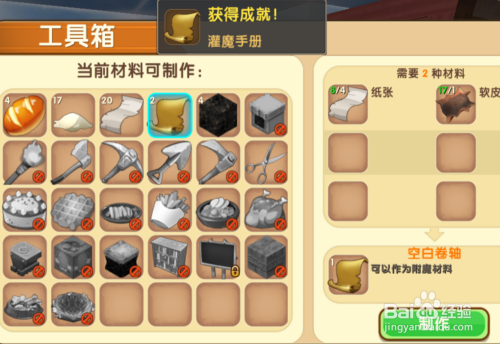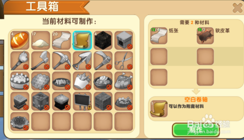 获得皮革之后我们在工作台这里将纸和皮革制成空白卷轴。