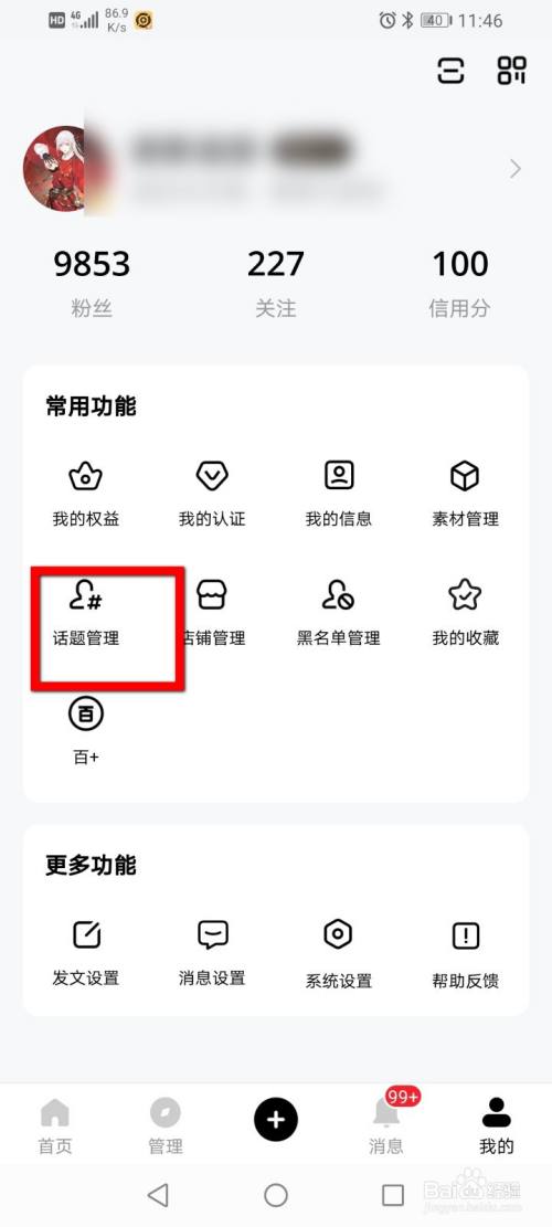 在里面点击话题管理 。
