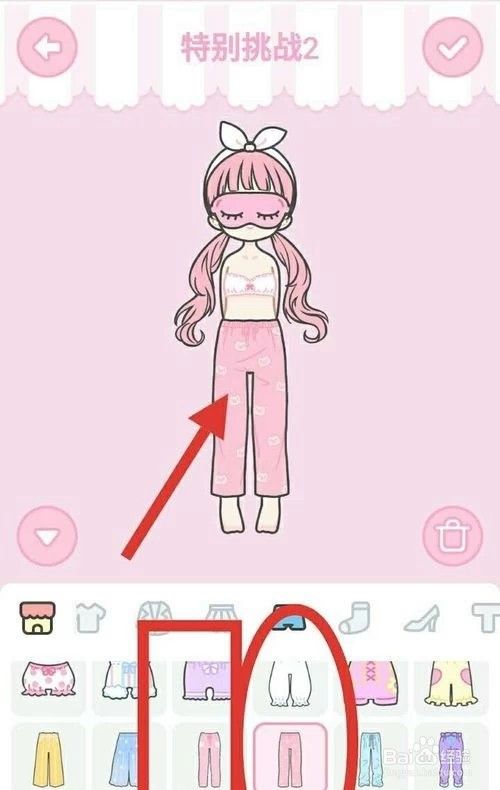 第5个图是上衣,这个很容易看出是一个V字领,底部是圆弧形状。第6个图不能很明显看出是什么,但是目前就只差鞋子,所以,这个形状应该是鞋子的装饰形式。找一个粉色,类似猫或猪的鞋子,选定下面这双