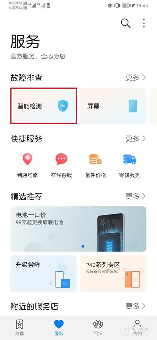 2,在服务页面,打开【智能检测】;