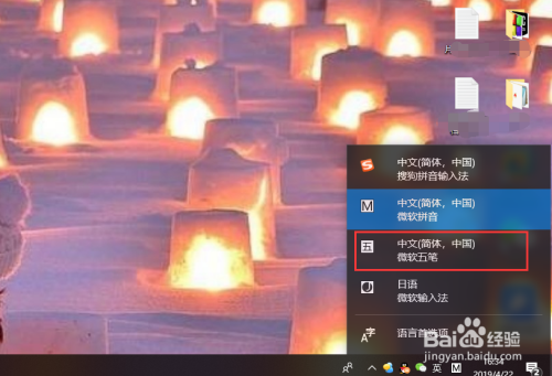 添加完成后,点击桌面的右下角输入法位置,选择微软五笔,就可以使用五笔输入法了