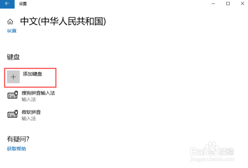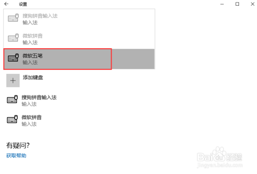 在中文窗口中的键盘配置下,点击添加键盘的加号图标,在弹出的菜单中选择微软五笔输入法