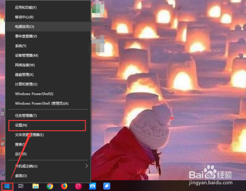点击win10操作系统上的开始菜单图标,在弹出的菜单中,点击设置