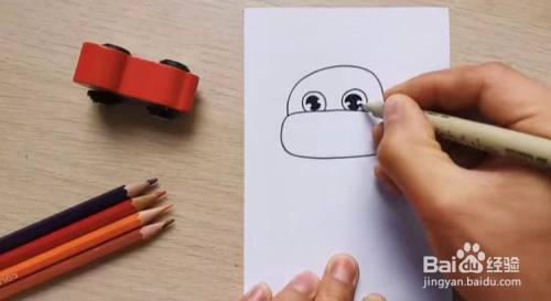 先画出两个偏方形一些的椭圆,分别作为牛的脸部和头部,接着画出牛圆圆的眼睛,眼瞳涂黑,注意要留出高光的位置