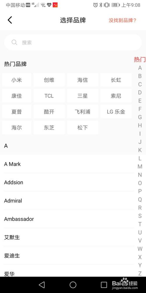 4. 点击步骤3中的电视,此时进入“选择品牌”页面,可以看到很多不同品牌的电视,点击“海信”。