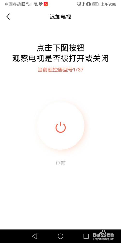 6. 点击“电源”按钮,看看电视是否被打开或关闭。