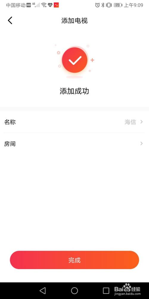 这样就设置好了,可以更改名称,然后点击“完成”。下次就可以通过小爱音箱控制电视的打开或关闭了。