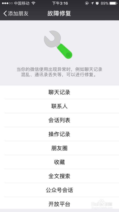 第三步:在弹出来的【故障修复】界面中,选择“聊天记录”进行修复,等待修复完成后重新启动微信即可完成恢复。