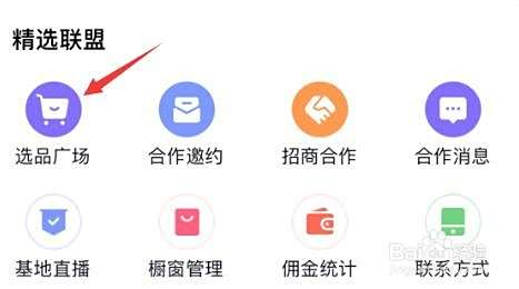 在商品橱窗页面精选联盟下方点击选品广场即可