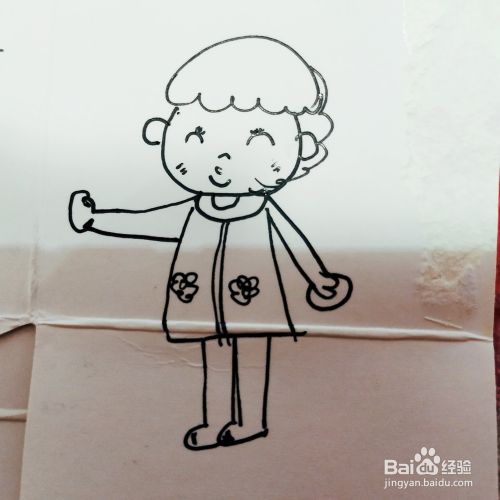 第五步,我们来画卡通男孩的双腿,双腿的细节勾勒出来。