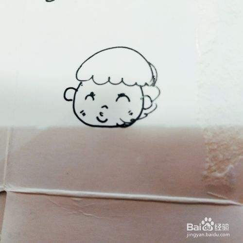 第一步,我们来画卡通男孩的头部轮廓,还有头发的轮廓。