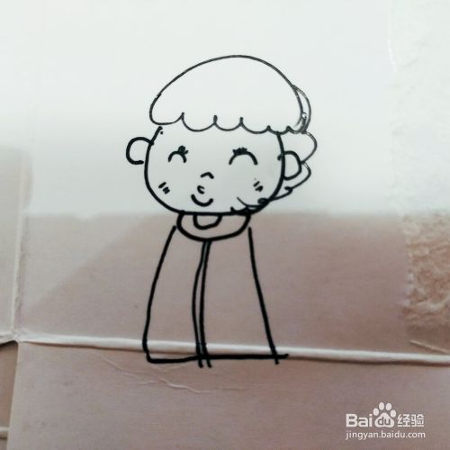 第三步,我们来画卡通男孩的上半身身体轮廓。