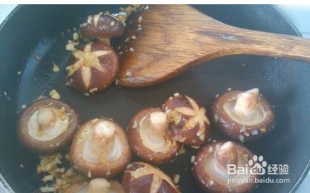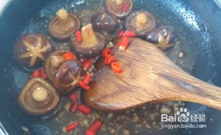 将焖煮好的香菇盛入油菜的盘子里,香菇油菜就做好了