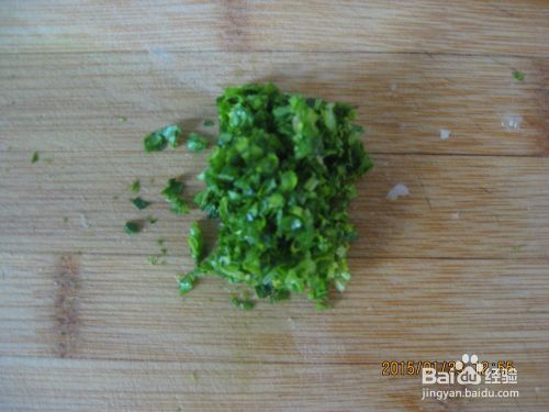 菠菜切碎,菠菜取菠菜芯的三四片小嫩叶子就够。