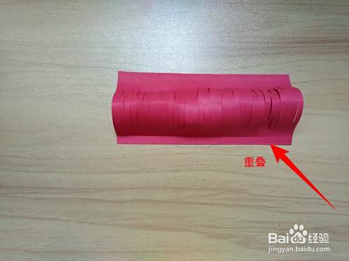 撕出最左侧的一条红线条,并在最左侧的部分贴上双面胶。