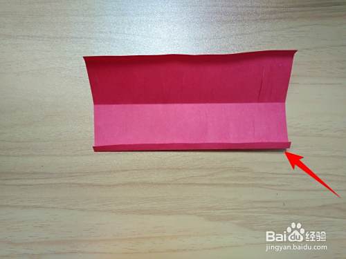 拿出红色彩纸往上折到如图箭头所指的位置线。