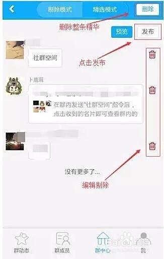 3、点击获取-等待审核-审核完毕进入界面可进行预览及发布操作,向群内发送精华链接。
