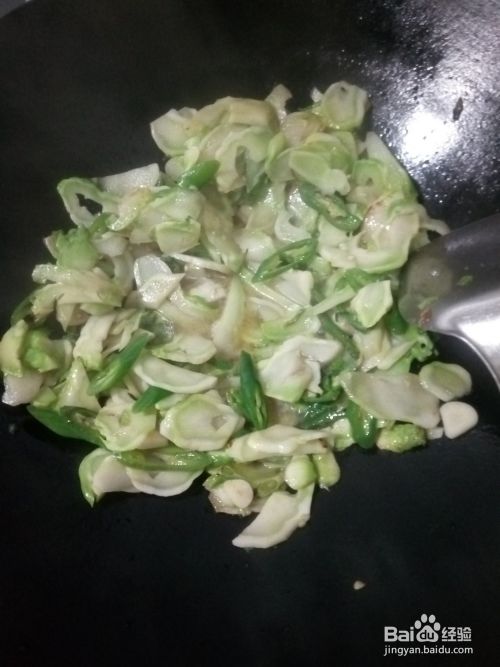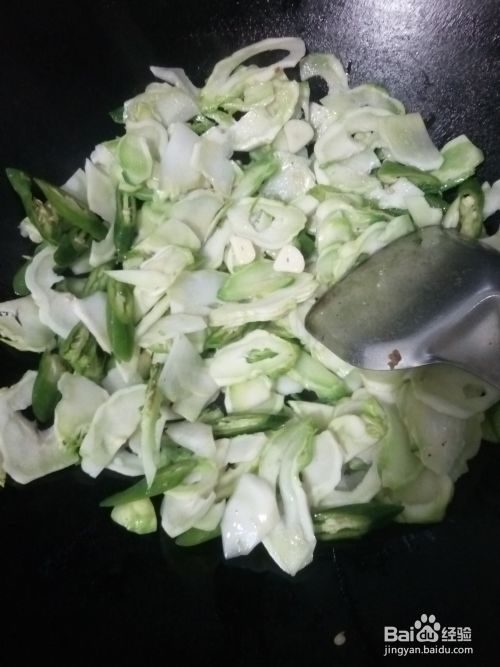 锅中放油烧热,倒入儿菜,青椒和蒜片翻炒。