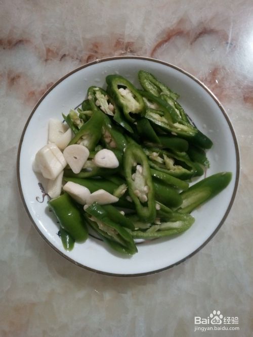 青椒清洗干净,斜刀切成片。蒜也切片。