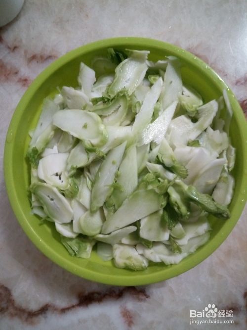 将洗干净的儿菜切成薄片。
