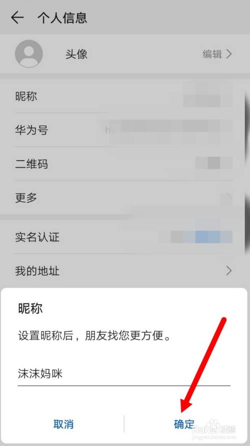 点击“昵称”设置新昵称,点击“确定”就可以了。
