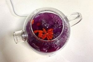 接着加入事先切好的紫薯块,继续炖煮15分钟。