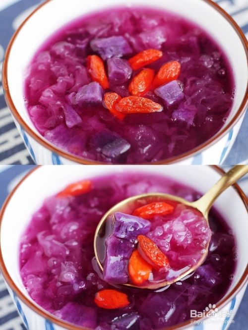 紫薯中富含丰富的蛋白质和氨基酸,能够提高机体免疫力,富含纤维素,促进肠胃蠕动,而且紫薯也非常适合减肥瘦身,低脂肪、低热能,常食用银耳也可养颜养颜,润肠通便,增强人体免疫力!