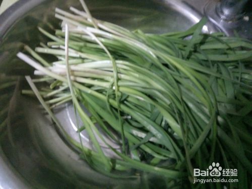 将韭菜摘干净,然后用水洗干净
