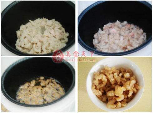 3、油渣倒入锅中可以稍微的再炼制一下,不过一定要小火,出油后放入葱姜蒜煸香。