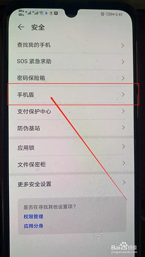 打开“安全”之后,在该界面找到“手机盾”,如图