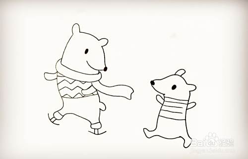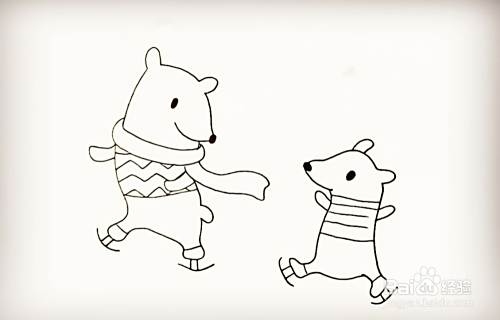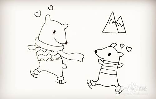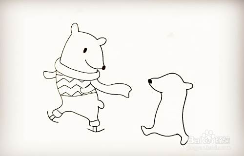 首先画出北极熊的头部.注意耳朵和鼻子的位置。